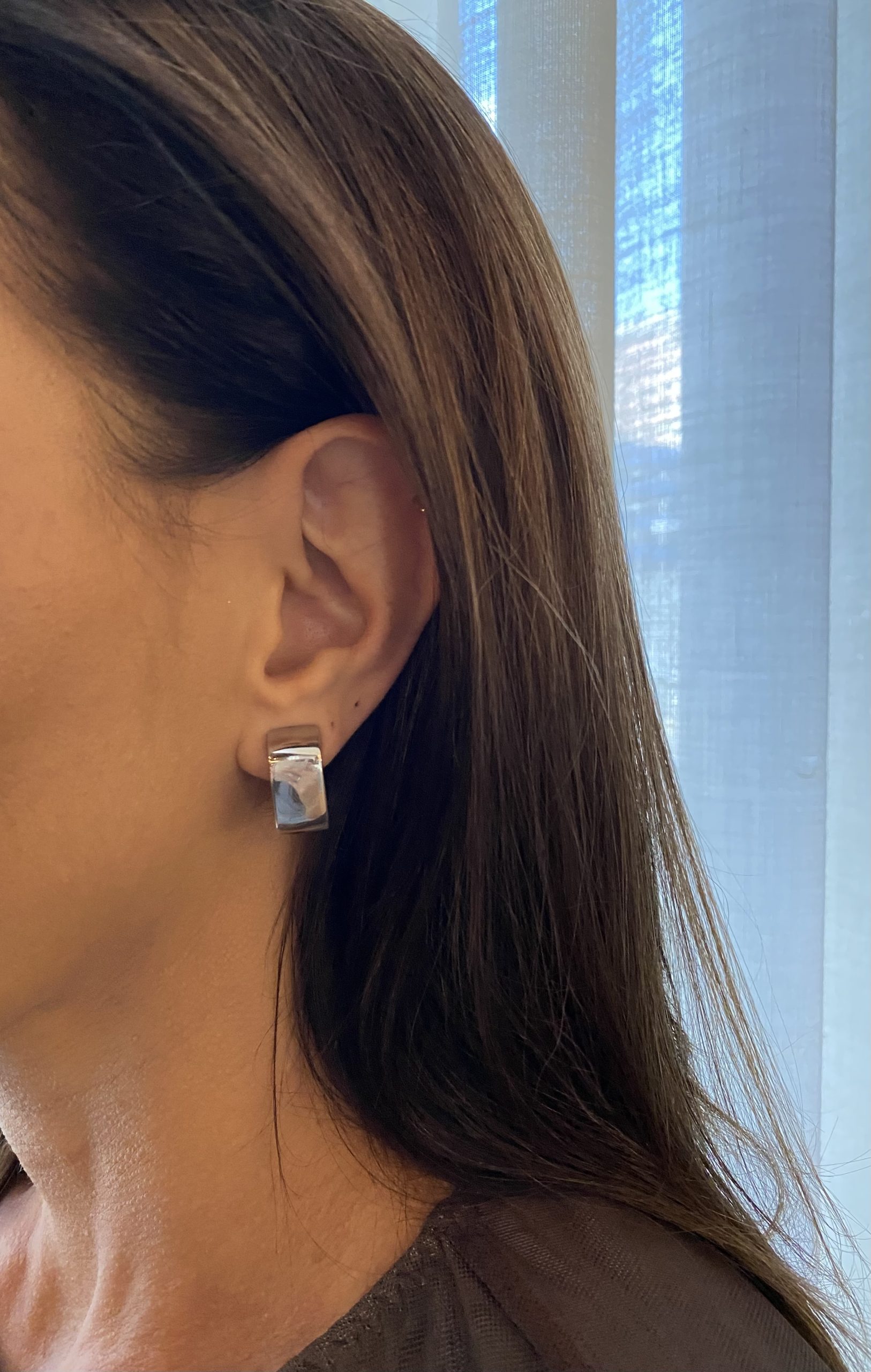 Brinco quadrado BH. rodio branco